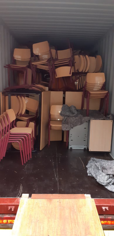 Dankzij een gulle gift van De Rooi Pannen in Tilburg in samenwerking met Aarts&Co Tilburg en Lionsclub Regte Heide Tilburg hebben wij een 40Hub container vol met schoolmeubilair en twee bedden naar Kenya kunnen verschepen.